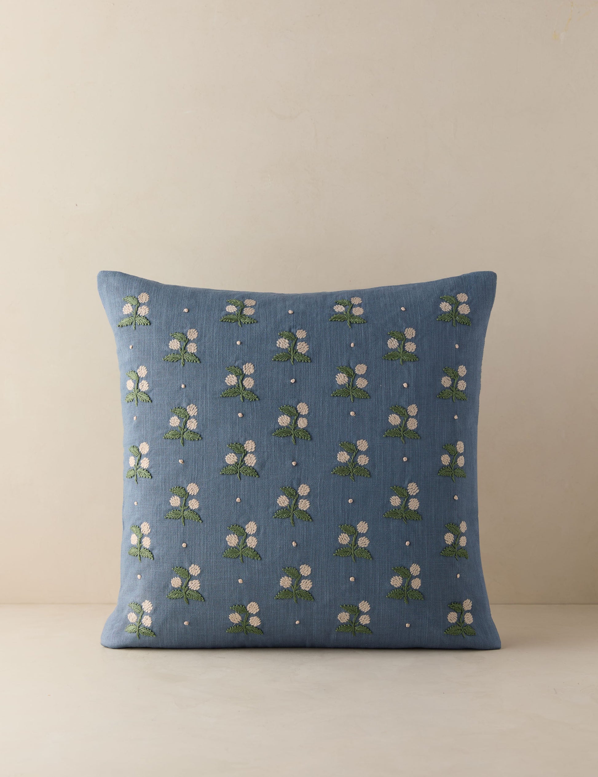 Notre coussin Madelief apporte une touche délicate à votre décoration. Ses broderies florales contrastent avec la fraîcheur des verts et crèmes sur fond denim. On adore ce coussin pour une note intemporelle sur votre canapé ou votre lit.