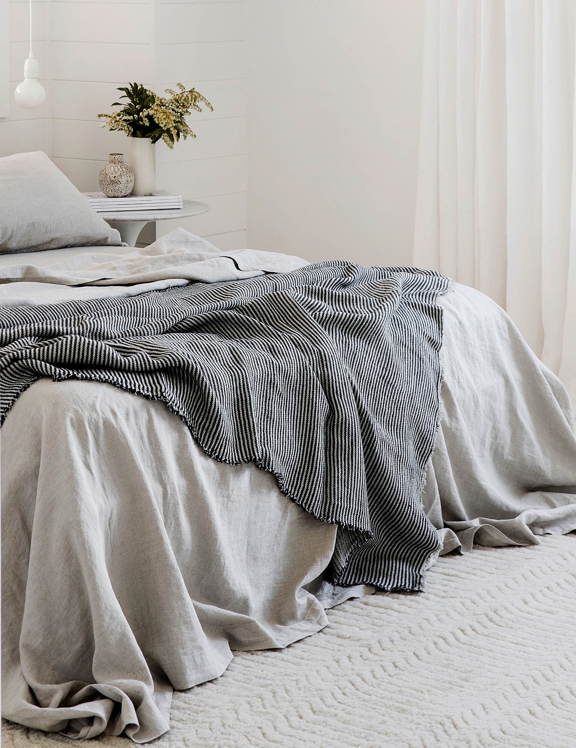 Cultiver s'engage à vous proposer une gamme de textiles haut de gamme, soigneusement conçus et issus d'une sélection rigoureuse, pour votre intérieur. Le plaid Mira, tissé au Portugal en lin épais, apporte une touche d'élégance et de confort à votre chambre ou votre salon.