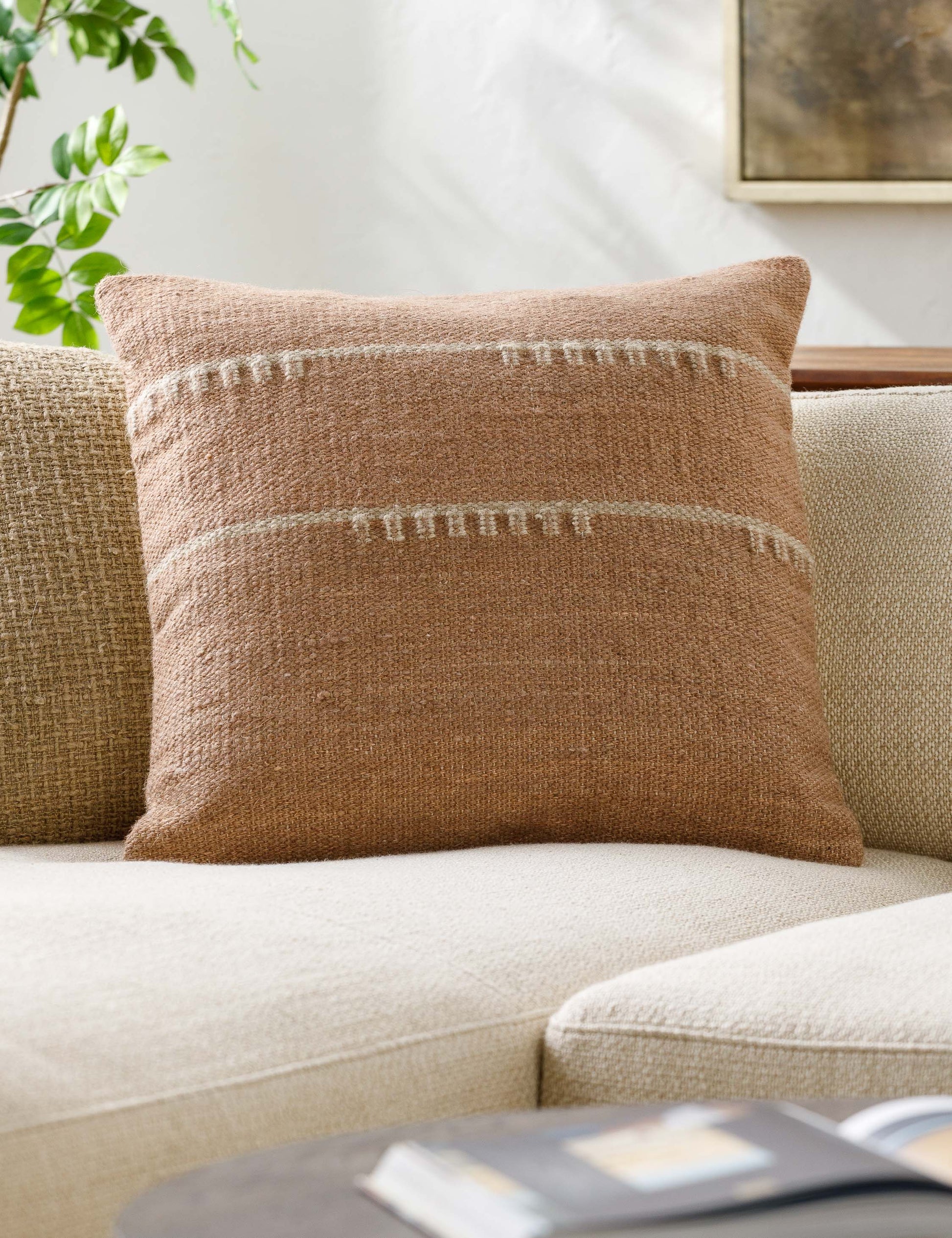 Le coussin Mufaro est idéal pour un intérieur où design moderne et élégance intemporelle se rencontrent. Ses motifs en dents de scie apportent une touche de fantaisie et créent une ambiance chaleureuse et raffinée. Le mélange de laine et de coton lui confère une douceur naturelle et une grande durabilité.