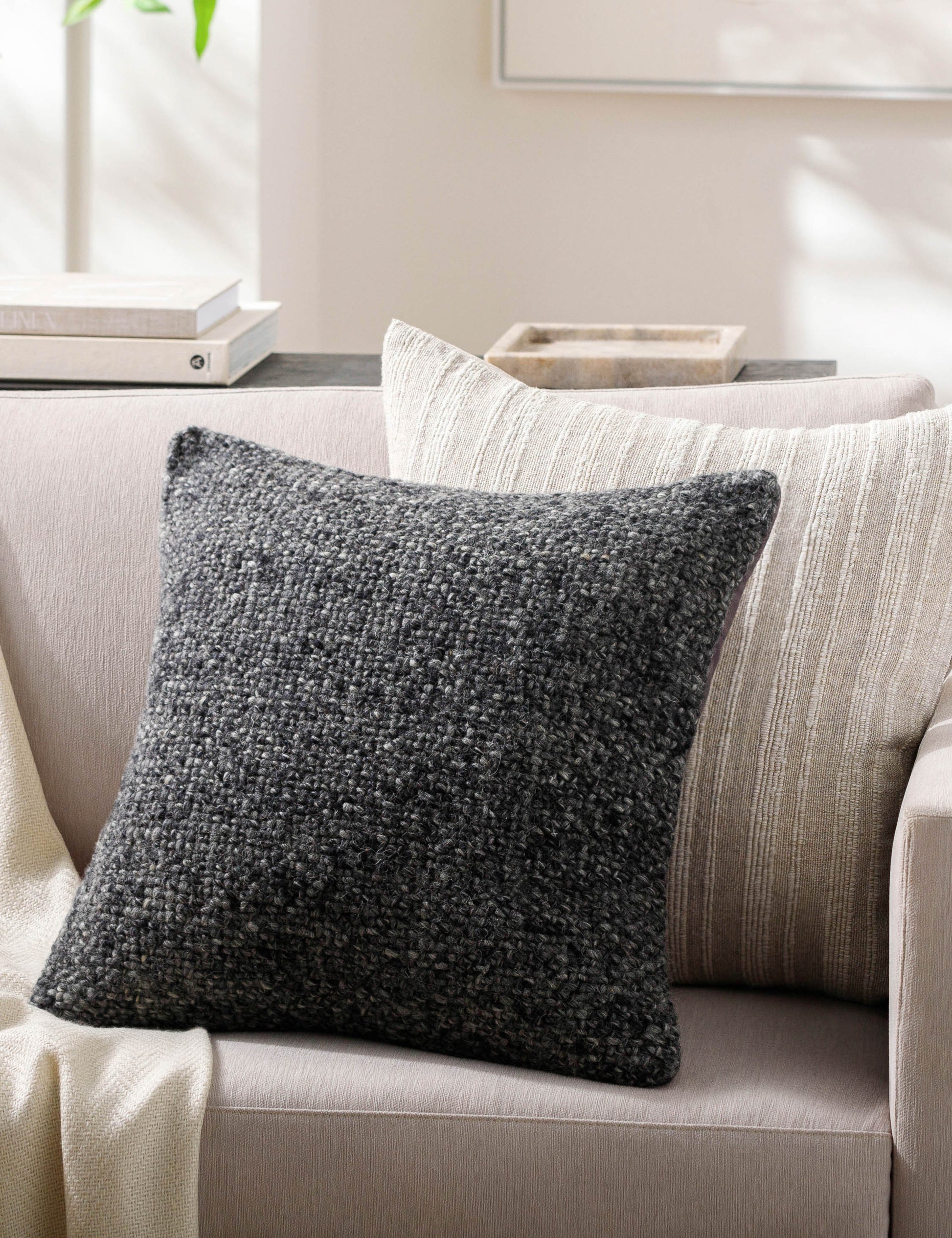 Sublimez votre intérieur avec notre coussin décoratif Vidal, orné d'un motif chiné en grosse laine tissée. Ce coussin polyvalent allie style moderne et toucher agréable, ce qui en fait l'élément idéal pour créer une décoration chaleureuse et accueillante.